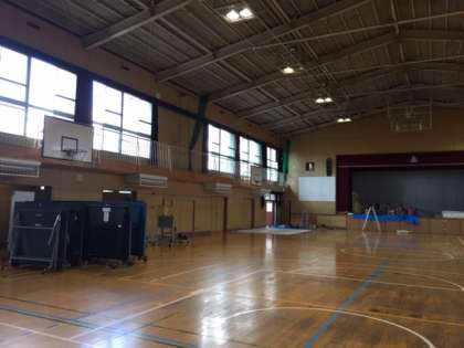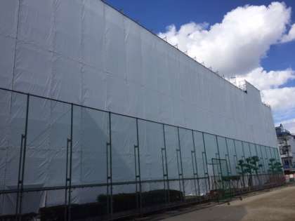 西館(3年生・2年5組)の外壁工事、体育館のエアコン設置工事が進んでいます。今学期中には完成予定です。