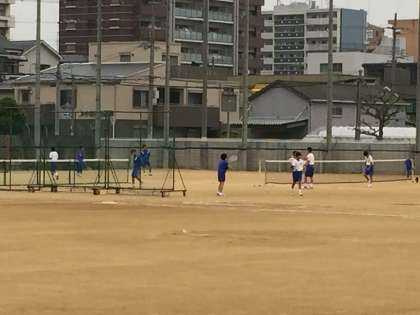 野球部は難波中と練習試合、陸上競技部は大阪陸協第3回記録会がヤンマーフィールドで行われ、投擲組が学校で練習をしてから8時過ぎに向かいました。