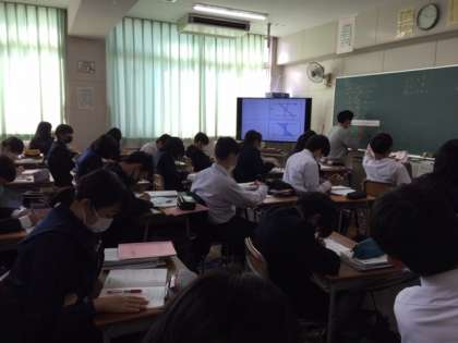 1年生 国語、2年生 数学、3年生 理科の授業の様子です。主体的に学習しています。