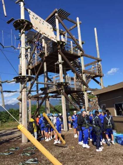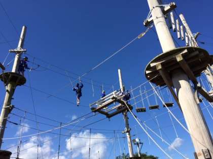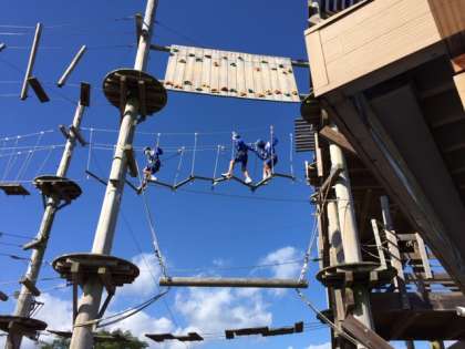スカイアドベンチャー、チャレンジ中です。風が強いので、よく揺れます。