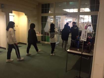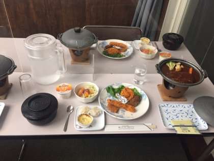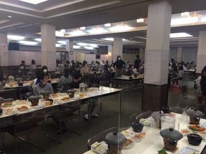 夕方の時間です。マスクをはずしたときは、会話を慎み、感染対策をしています。