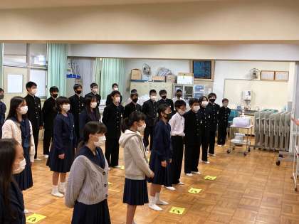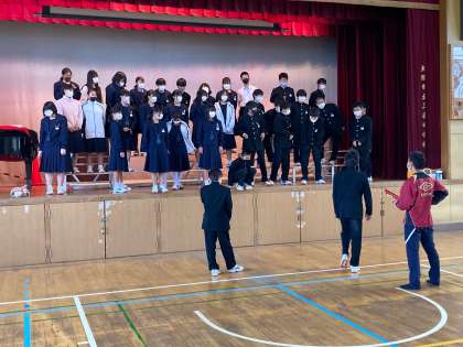 例年に比べ、練習時間が少なく、コロナ感染予防対策のため、教室では歌えません。(写真3枚目)非常に多い制約の中でも、一生懸命に練習に取り組んでいます。歌声が校舎内に響いています。本番が楽しみになってきました。