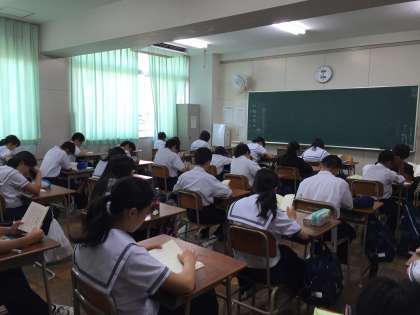 本校では朝の学活の前に(8時25分から)10〜15分間、全学年読書をしています。写真は1年生です。全員、真剣に取り組み、その集中力は素晴らしいものです。