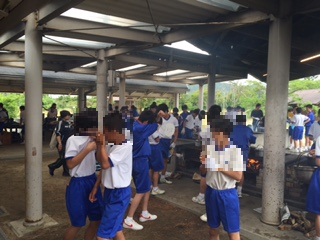 各班ごとに活動場所について、協力して野外炊飯が始まりました。