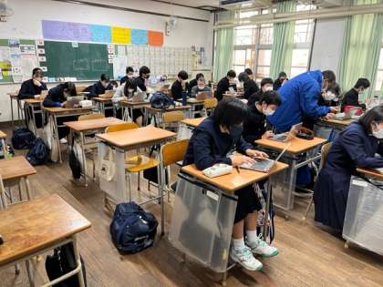 3年生は、音楽の時間に「合唱」をビデオに撮り、それぞれの学級発表とします。