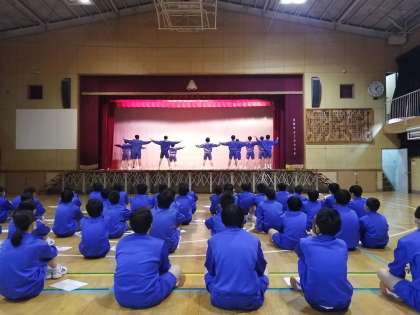 「Bruno Mars」の「Runaway Baby」という曲に合わせて、自分たちでダンスを創作し、オリジナルダンスを班ごとに発表しました。