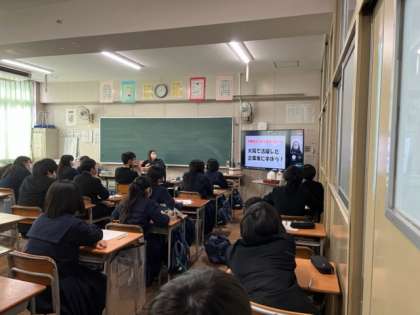 1・2年生対象に大阪商工会議所「大阪企業家ミュージアム」から講師の先生に来ていただき、職業講話をしていただきました。