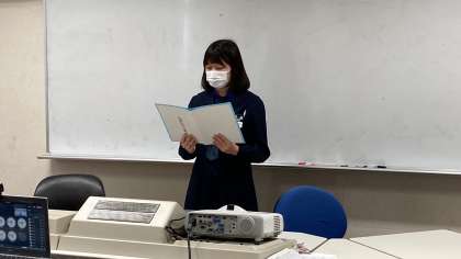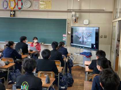 その後、在校生から「お別れの言葉」、続いて1年生からお祝いのビデオメッセージと卒業式で胸につけて頂くリボンの贈呈、2年生からは卒業生に送る言葉と心のこもった合唱を届けました。