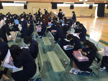 3年生は卒業式の予行練習の後、最後の学年集会を体育館で行いました。