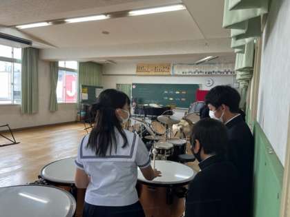 バドミントン部・バスケットボール部・吹奏楽部の様子です。吹奏楽部は各パートに分かれ、少人数で活動しています。