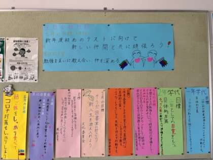 生徒会執行部、各委員会で月間目標を決めました。玄関入って左手に掲示しています。目標と目標達成に向けての具体的方策を確認しましょう。