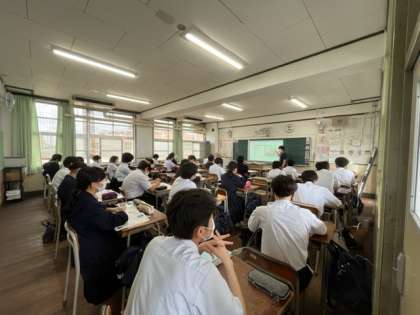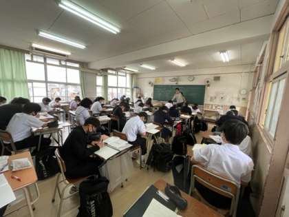 1年生「国語」、2年生「数学」、3年生「社会」の授業の様子です。