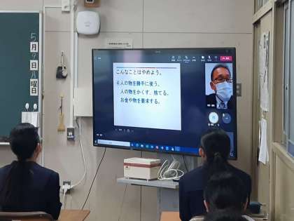 今日の全校集会はTeamsを使ってリモートで行いました。5月9日『いじめについて考える日』ということで、校長先生にパワーポイントを使って分かりやすく説明をしていただきました。いじめは絶対に許されるものではありません。これをきっかけに再度いじめについて考えてほしいと思います。