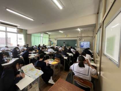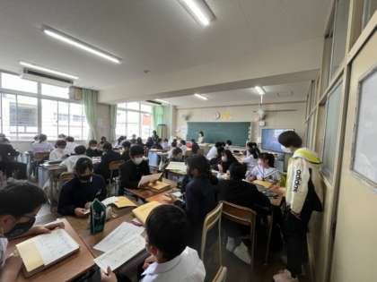 1年3組は「国語」、1年4組は「社会」の授業です。