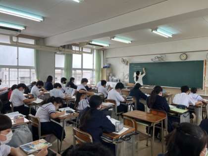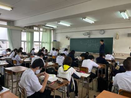 2年1組「数学」、2年2組「理科」の授業のようです。