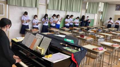 今日は音楽コンクールの課題曲紹介と早速パート別に練習しました。