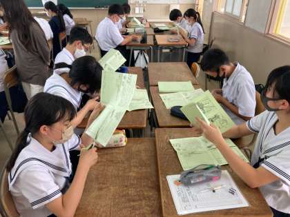 明日、実施される校外学習の取り組みを行いました。しおりを作り、持ち物などの注意事項を全員で確かめました。
