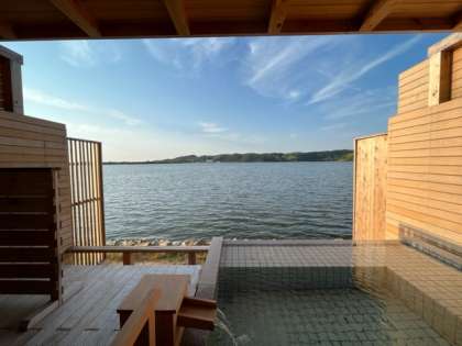 入館後、破損調査を実施し、その後、夕食です。部屋から湖が綺麗です。