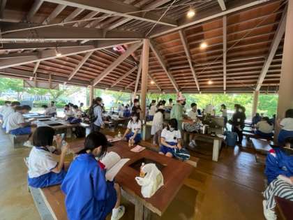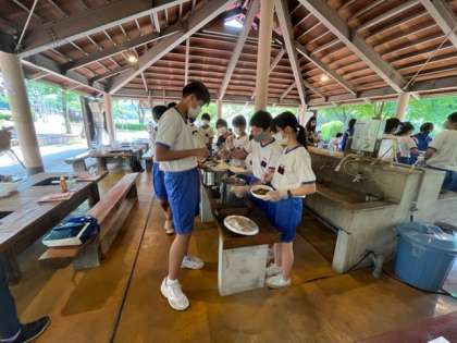 ちょっと遅めの昼食です。お腹が空いていますが、みんなで協力して配膳をします。