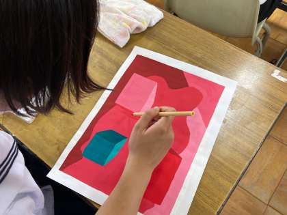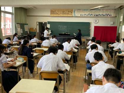 ・写真上 音楽(歌のテスト) 生徒も歌の採点、感想を書いています。