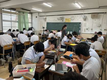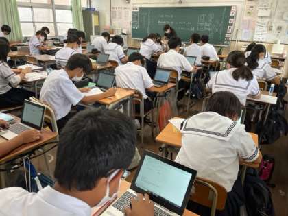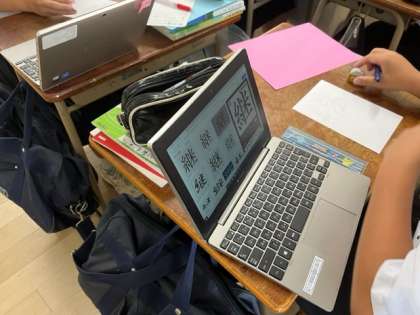 3年生「国語」「英語」の授業の様子です。タブレットパソコンを使い、調べたり、考えたりしながら学習を進めています。