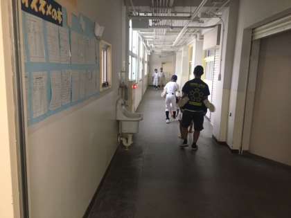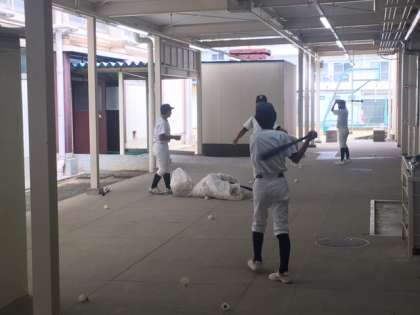 雨天によりグラウンドが使用できなくても、野球部は工夫して練習をしています。