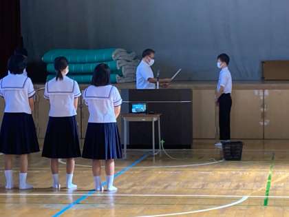 ・9月は敬老の日やお彼岸(秋分の日)があります。家族の絆を大切にしましょう。と話がありました。また明日のチャレンジテストについても説明がありました。