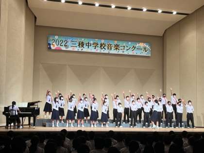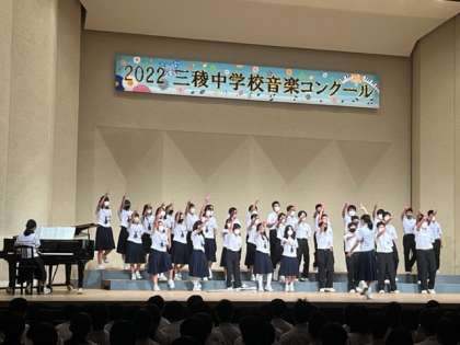 1年生の自由曲の発表です。各学級、趣向を凝らした表現をしています。