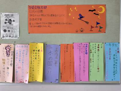 中間テストが終わり、後期の生徒会選挙も始まります。大きな行事では「運動会」があります。それぞれが学校でのいろいろな活動を成功させる力となってほしいです。