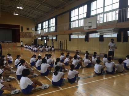 今日は昨夜の雨で、グランドコンディションが悪かったので、全学年とも体育館でしました。
