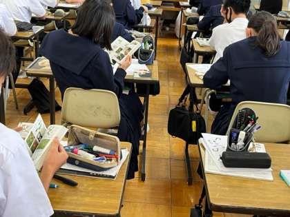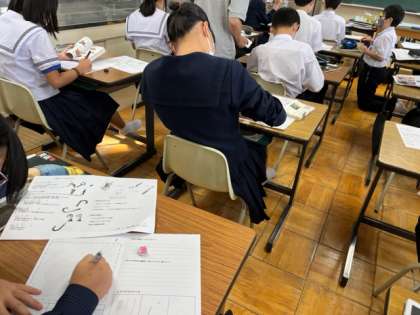教育実習生による研究授業(1年生)です。傘の持ち手をデザインすることで発想力・想像力・表現の幅を広げることを目的としています。