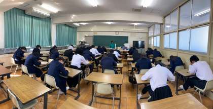 3年生は歌のテスト、2年生は小テストをしました。美術の小テストは浮世絵の作品と技法、その歴史についてでした。歌の声は流石に3年生で素晴らしく、廊下に響きわたっていました。