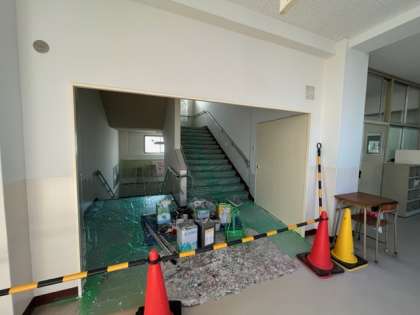 階段の塗装を行っています。壁の汚れが目立つようになっていましたが、あと数日で「綺麗」になります。塗装後は、その「綺麗」を保てるように、みんな「綺麗」な気持ちで。
