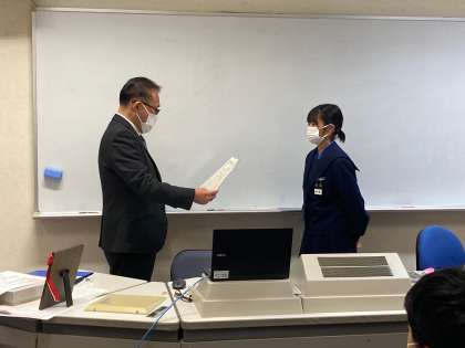 また、大阪市青少年読書感想文の教育委員会長賞とバドミントン部への賞状伝達がありました。