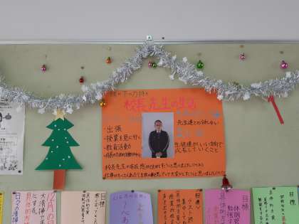 11月から新しいメンバーで生徒会執行部がスタートしました。まずは執行部の活動を知ってもらおうと、窓の飾り付けをしたり、掲示板を活用することにしました。掲示板には縁の下の力持ちということで、執行部がインタビューした内容をまとめて掲載しました。今回は校長先生の記事にしました。2週間程度で新しくなるようなので、今後も期待して頂きたいと思います。