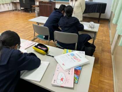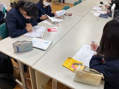 水曜日の放課後は、学習会を行っています。プリントや問題集などを解き、わからないところを聞きながら進めています。「継続は力なり」自学自習する習慣をつけましょう。
