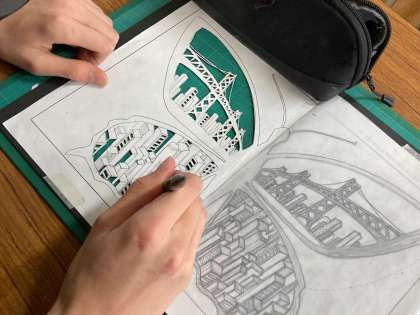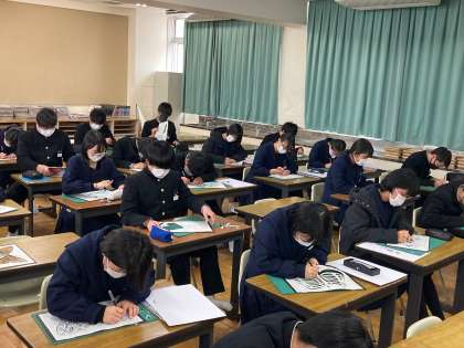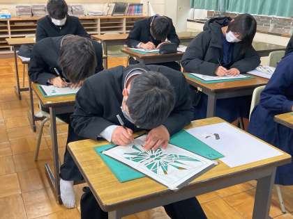 3年3組、4限目の授業は美術でした。切り絵を丁寧に作成しています。