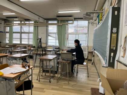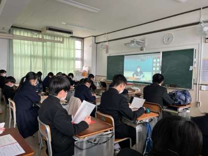 2月10日(金)・11日(土)に実施される私立高校の入学試験の事前指導を行いました。インフルエンザの流行もあり、全員を体育館に集めることは避け、教室でTeamsを使い、オンラインで進路指導主事から心構え、注意点など話がありました。