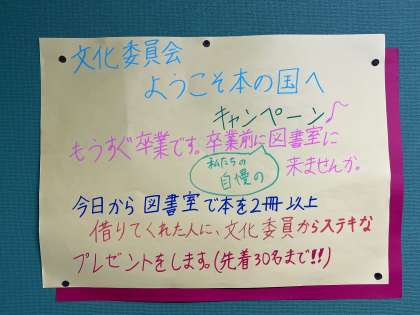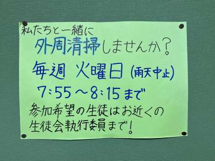 生徒会執行部、文化委員からの掲示物です。校内の階段、廊下の掲示板に貼ってあります。いろいろな委員会活動を活発にしていきましょう。