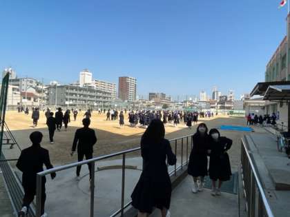春らしい天気になってきました。給食が終わり、運動場、図書室などで多くの生徒が過ごしています。