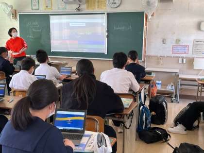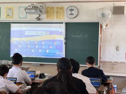 2年生英語の授業の様子です。ゲーム形式で行っています。