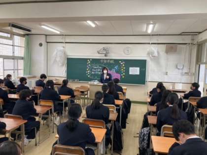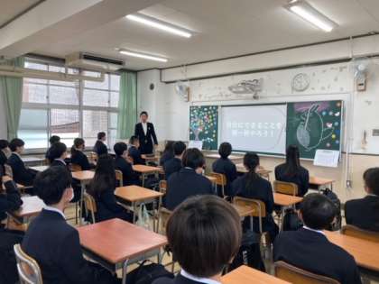 学級活動の様子です。初めて会うクラスメイトもいます。お互い、優しい気持ちで友達関係を広げていきましょう。