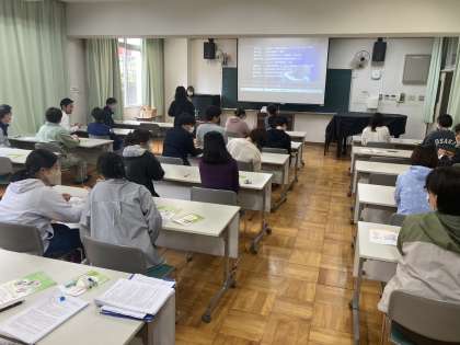食物アレルギーとアナフィラキシーについての研修を行いました。毎年、給食が始まる前に教職員で対応について確認をしています。