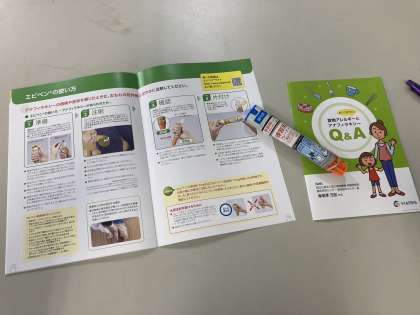 エピペンを処方されている生徒もいます。アナフィラキシーがあらわれたときのエピペンの使用法についても確認しました。