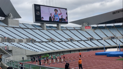 木南道孝氏がハードルのトップ選手ということもあり、日本のトップ選手が一堂に集まり競い合う大会です。特に男子100mでは桐生、多田、坂井選手ややり投げの北口選手、ハードルの寺田選手など世界で活躍する選手も多く参加しています。