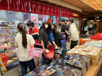 夕食が終わり、部屋でくつろいだり、入浴したり、お土産を購入したりしています。