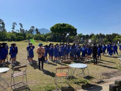 ジップライン、サイクリング、バウムクーヘンづくり、ブナの森ウォーク、ショートゴルフ、むきぱんだ史跡見学に分かれて体験します。