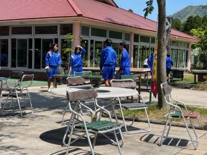 昼食までの時間、活動の終わったグループから、アスレチックやスポーツを楽しんでいます。