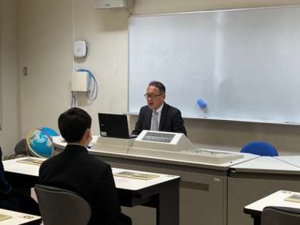 雨が降ったため、Teamsを使ってリモートで全校集会を行いました。