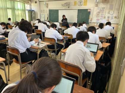 1年生「理科」「英語」「国語」の授業の様子です。テスト前になり、デジタルドリルを使っての問題演習も行っています。